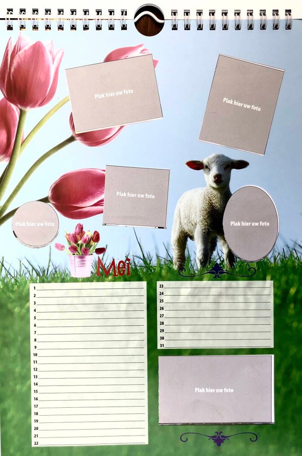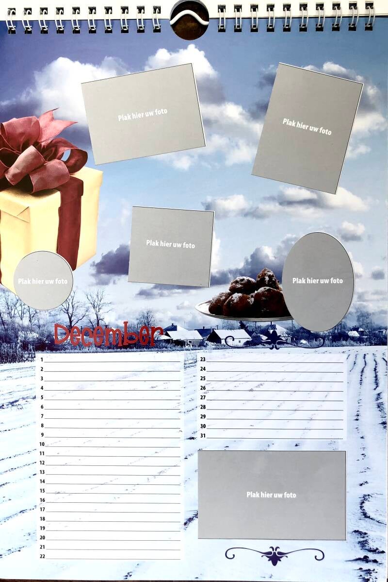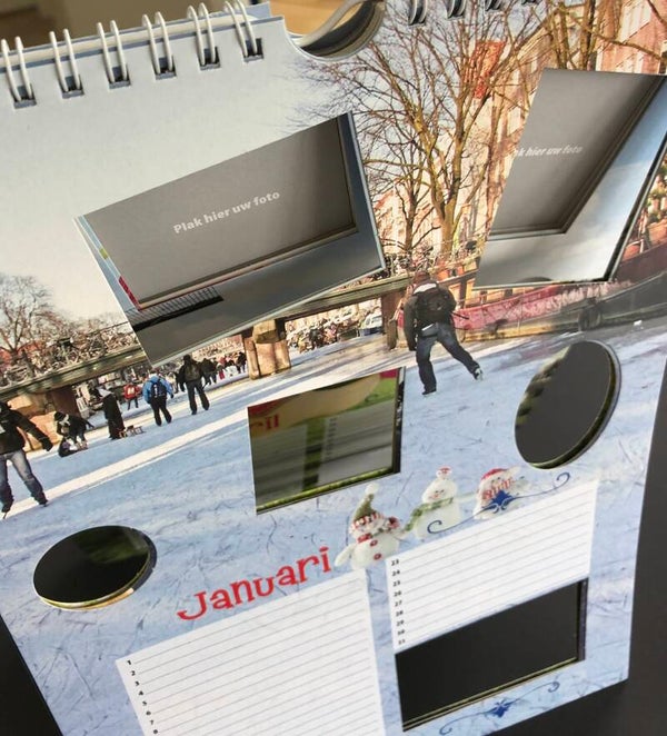 Ook kun je er voor kiezen achter elk blad van de maand je dierbare foto's te plakken. Je hebt dan 72 i.p.v 12 foto's in beeld.